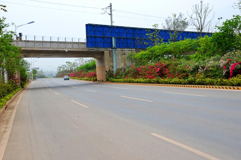 該道路設(shè)計(jì)標(biāo)準(zhǔn)為城市主干道,道路全長(zhǎng)約4.8公里。設(shè)計(jì)道路寬度為60米,雙向8車道,橫斷面采用四塊板形式,路面采用瀝青混凝土路面,設(shè)計(jì)速度為60千米/小時(shí)。主要包括道路、橋涵、排水、照明、綠化、交通工程等建設(shè)項(xiàng)目。項(xiàng)目總投資6.5億元,其中建安費(fèi)3.2億元。