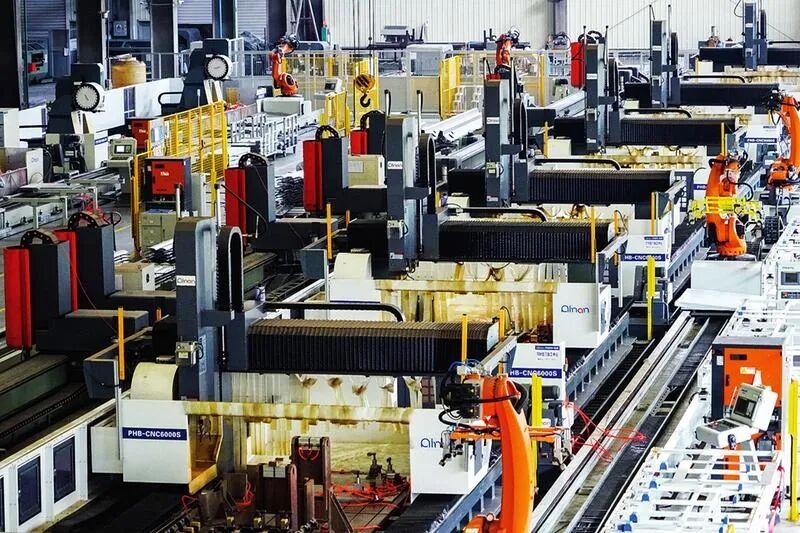 南南鋁業(yè)的自動(dòng)化加工中心內(nèi),機(jī)器人正在加工鋁合金型材。 記者葉子榕攝