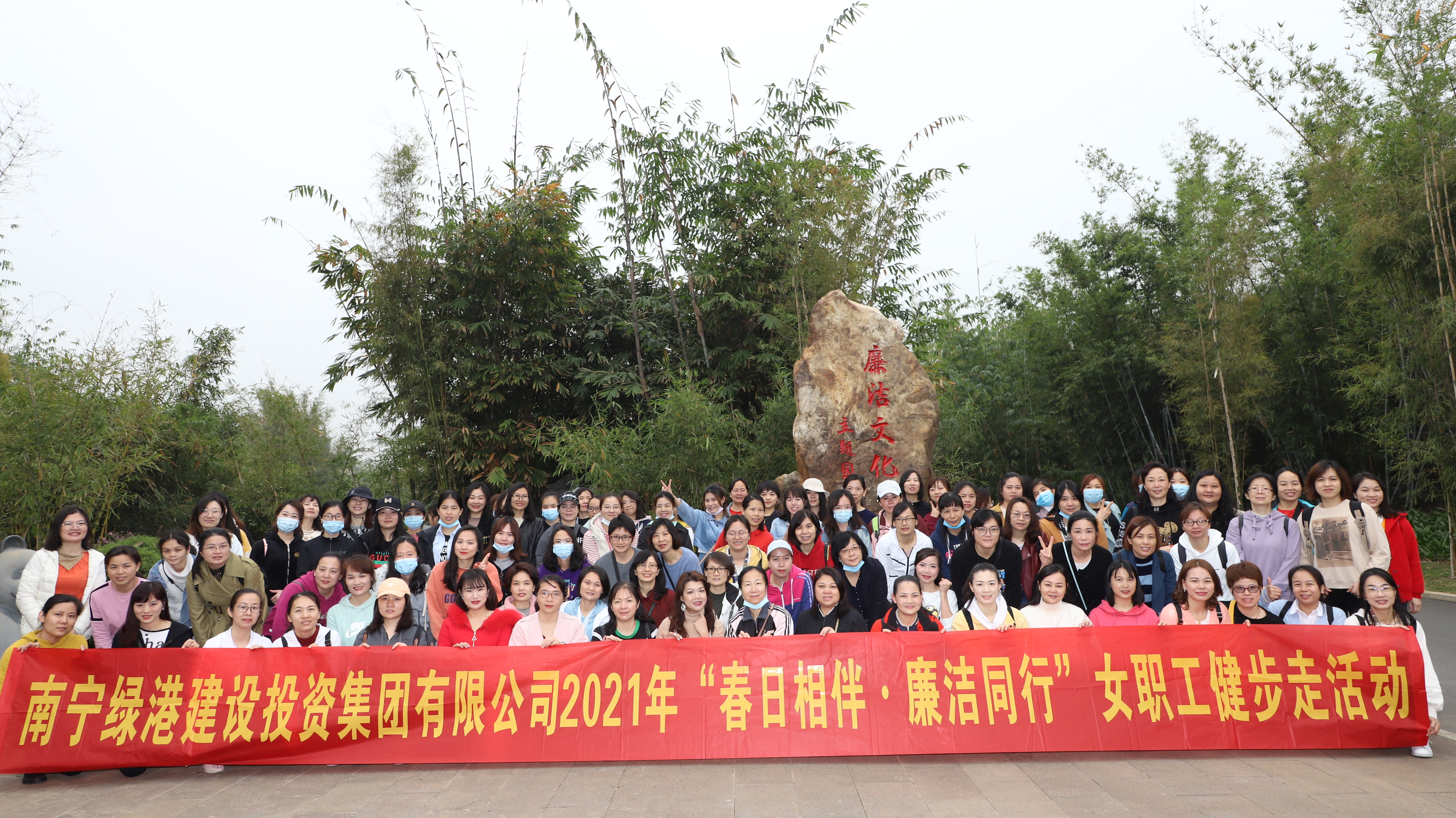 陽(yáng)春三月,春意盎然。為慶祝第111個(gè)“三八”國(guó)際婦女節(jié),充分展示婦女職工積極進(jìn)取、昂揚(yáng)向上的巾幗風(fēng)采,弘揚(yáng)“綠色運(yùn)動(dòng)”健康理念,倡導(dǎo)健康文明生活方式,3月8日,綠港集團(tuán)黨委、綠港集團(tuán)工會(huì)、綠港集團(tuán)女工委在南寧青秀山共同舉辦“春日相伴·廉潔同行”健步走活動(dòng)。集團(tuán)公司黨委書(shū)記、董事長(zhǎng)龔國(guó)強(qiáng),集團(tuán)公司黨委副書(shū)記、總經(jīng)理鄧?yán)^慧,集團(tuán)公司黨委委員、副總經(jīng)理陸羿冰,集團(tuán)公司黨委委員、副總經(jīng)理、工會(huì)主席黃麗琴,集團(tuán)公司財(cái)務(wù)總監(jiān)關(guān)月娥出席活動(dòng)。綠港集團(tuán)全體管理崗位女職工及其親屬約130人參加。