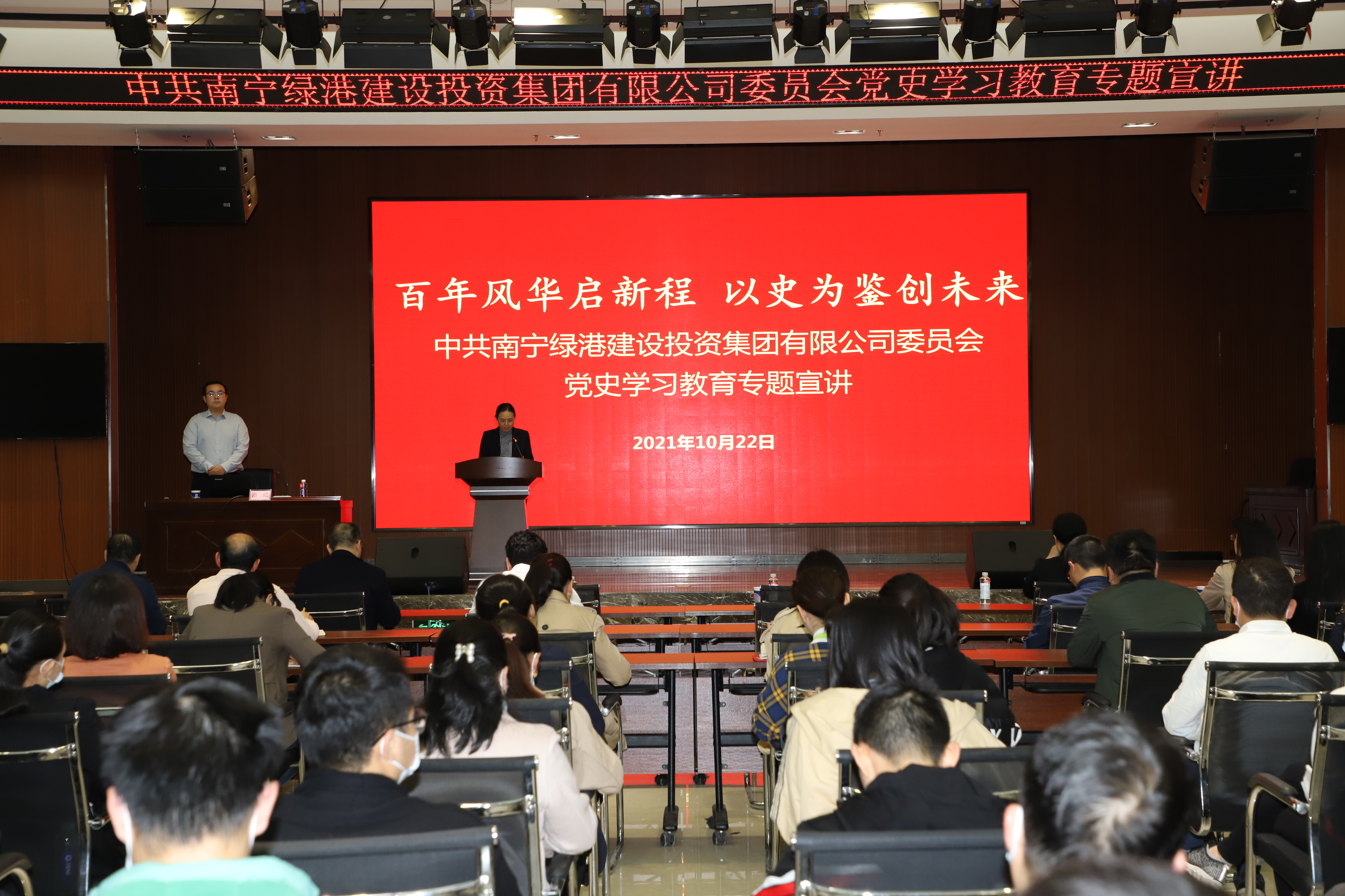 為持續(xù)推進黨史學(xué)習(xí)教育走深走實,讓廣大黨員干部更加深入理解習(xí)近平總書記在慶祝中國共產(chǎn)黨成立100周年大會上的重要精神,10月22日,綠港集團黨委舉辦學(xué)習(xí)貫徹習(xí)近平總書記“七一”重要講話精神專題宣講會。此宣講會由集團黨委委員、副總經(jīng)理、工會主席陸羿冰主持。集團公司全體黨員、預(yù)備黨員、積極分子約150人參加宣講會。