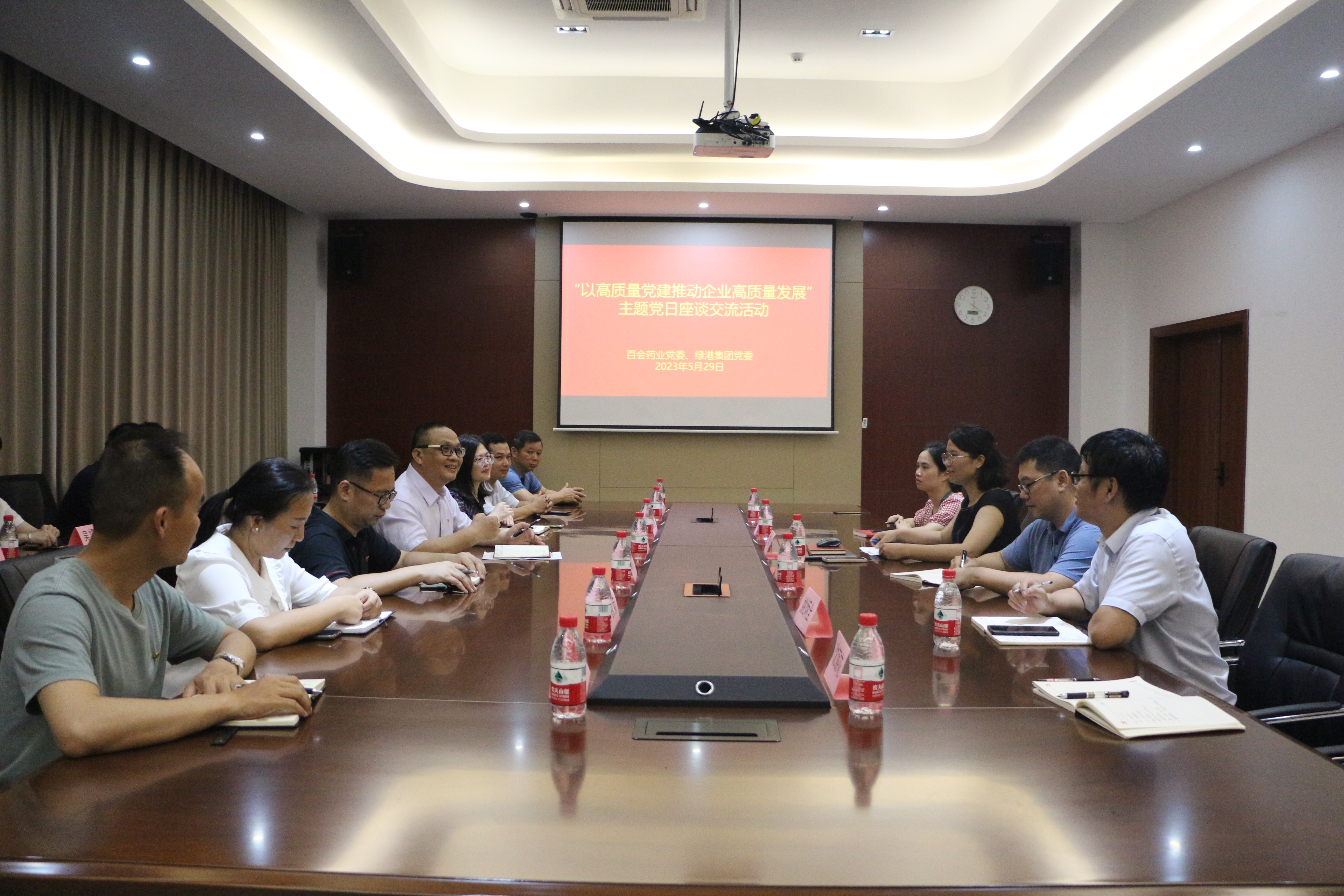 對(duì)話代表踐初心 學(xué)習(xí)互鑒共提升——綠港集團(tuán)黨委攜手百會(huì)藥業(yè)黨委開(kāi)展“以高質(zhì)量黨建推動(dòng)高質(zhì)量發(fā)展”主題黨日座談交流活動(dòng)