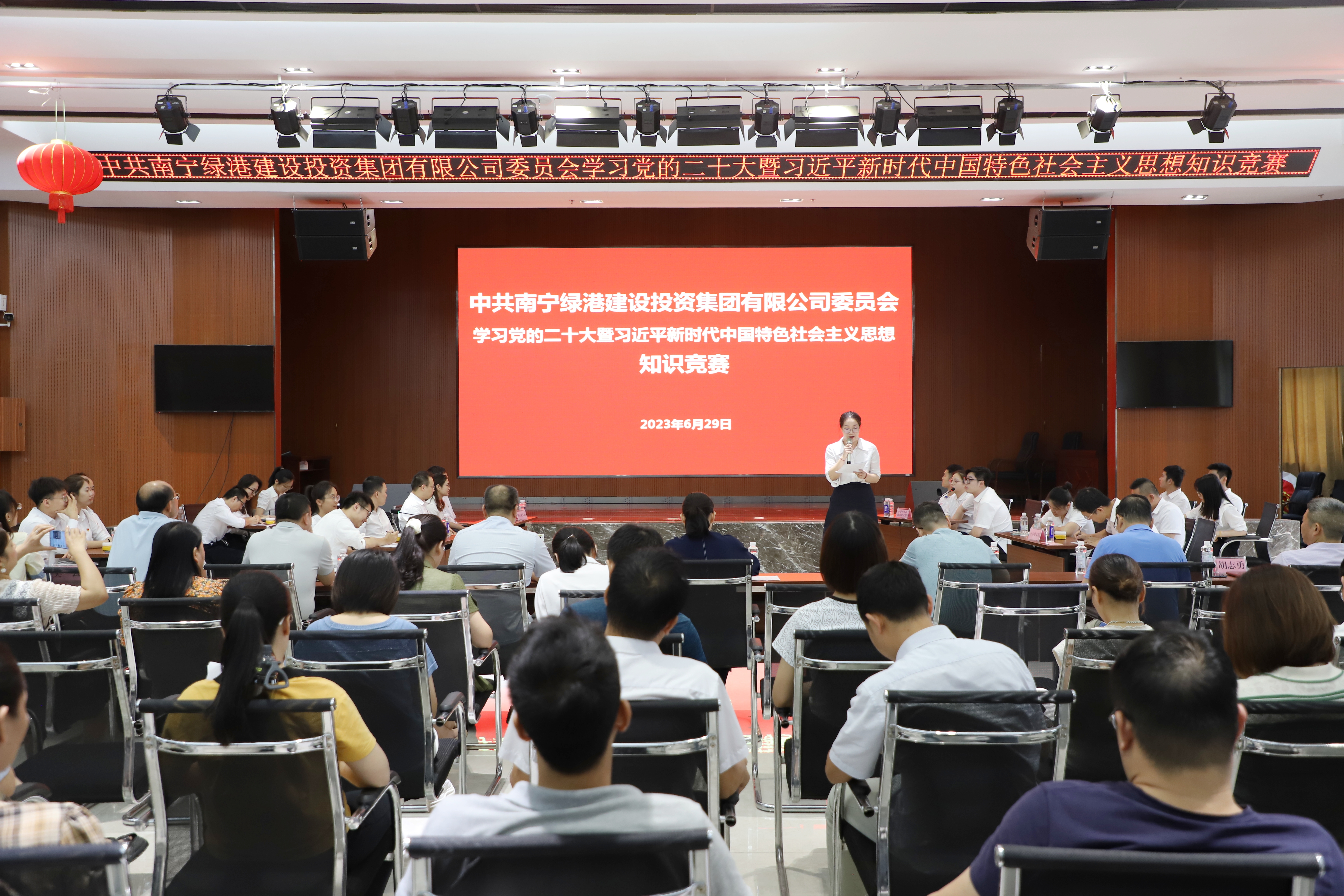 為迎接中國(guó)共產(chǎn)黨成立102周年,進(jìn)一步深入學(xué)習(xí)貫徹黨的二十大精神,落實(shí)習(xí)近平新時(shí)代中國(guó)特色社會(huì)主義思想,緊緊圍繞“學(xué)思想、強(qiáng)黨性、重實(shí)踐、建新功”的總要求和習(xí)近平總書(shū)記在廣西視察調(diào)研時(shí)的重要講話精神、引導(dǎo)廣大黨員干部堅(jiān)定信心跟黨走,以新氣象新作為推動(dòng)高質(zhì)量發(fā)展取得新成效,依靠頑強(qiáng)拼搏打開(kāi)集團(tuán)公司事業(yè)發(fā)展新天地。6月29日下午,綠港集團(tuán)黨委組織開(kāi)展學(xué)習(xí)黨的二十大暨習(xí)近平新時(shí)代中國(guó)特色社會(huì)主義思想知識(shí)競(jìng)賽活動(dòng),集團(tuán)黨委委員、副總經(jīng)理、工會(huì)主席陸?hù)啾?,集團(tuán)黨委委員、紀(jì)委書(shū)記蘭赤壽,集團(tuán)黨委委員,副總經(jīng)理陽(yáng)正輝和各黨支部書(shū)記、黨員和入黨積極分子代表出席活動(dòng)。